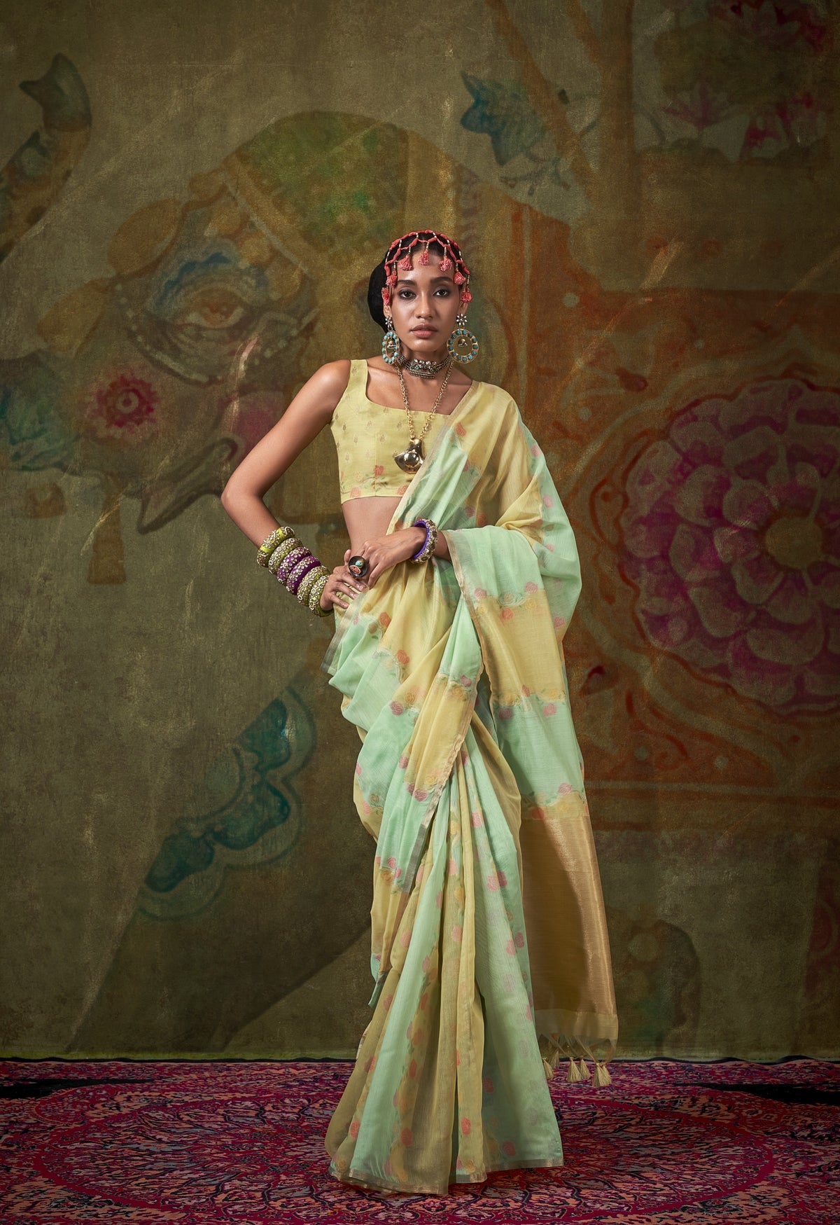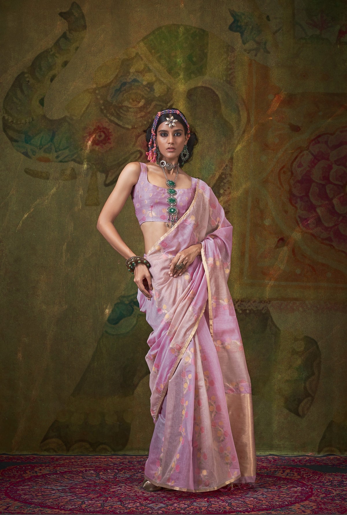 Elevate your wardrobe with the KIYOMI Tissue Silk Saree, a versatile masterpiece crafted for the discerning wearer. This refined drape combines the delicate lustre of tissue silk with impeccable tailoring, seamlessly transitioning from daytime elegance to evening sophistication. The lightweight fabric ensures comfort without compromising on the luxurious aesthetic that defines premium ethnic wear. Perfect for weddings, celebrations, and formal gatherings, this saree embodies timeless grace and contemporary design sensibility.
